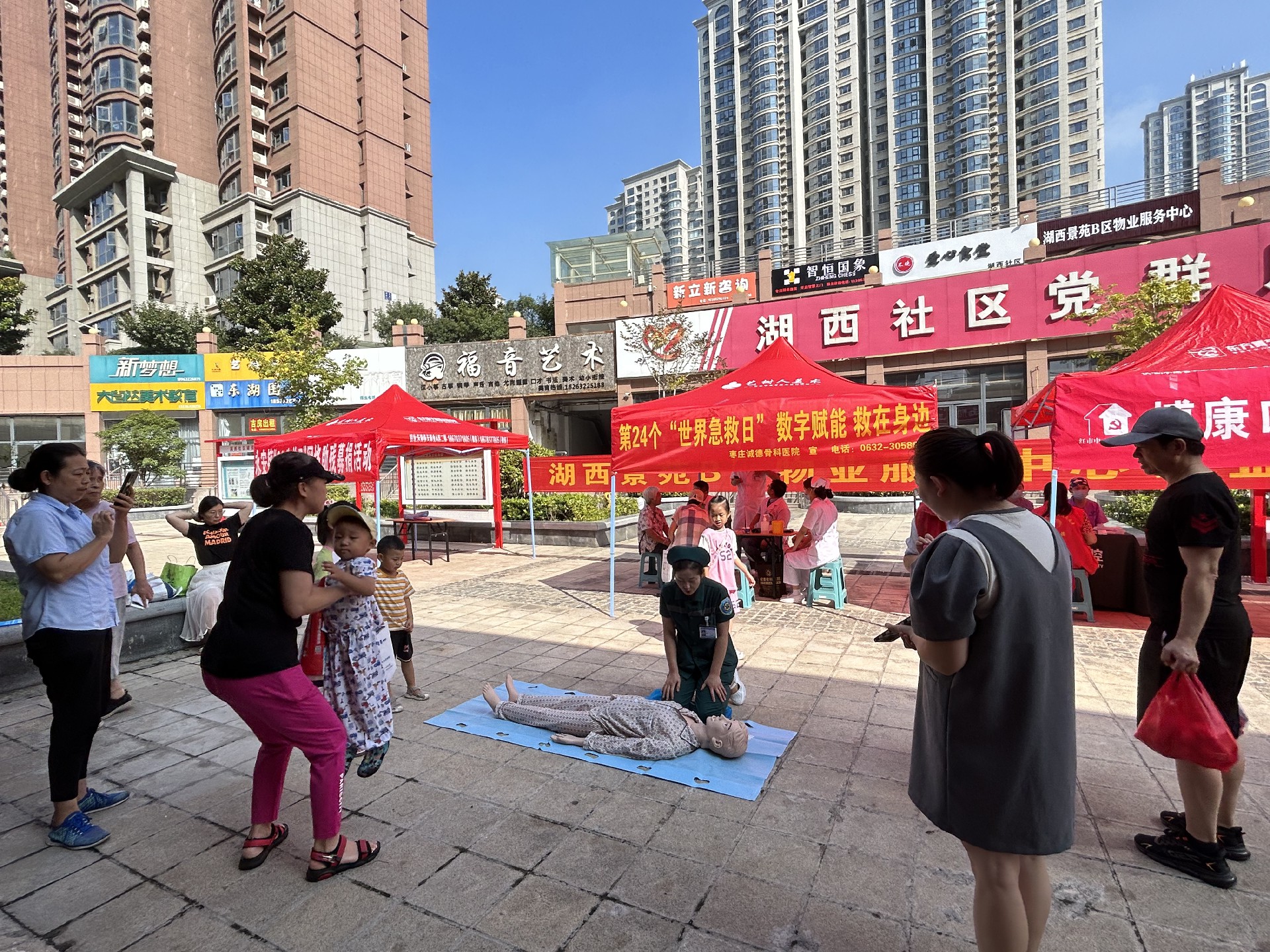 今年9月9日是第24個“世界急救日”,主題為“數字賦能 救在身邊”。為傳播應急救護知識,增強公共安全意識,提高群眾應對突發(fā)事件及意外傷害的自救互救能力,9月9日,棗莊誠德骨科醫(yī)院組織醫(yī)護人員走進湖西景苑開展了“世界急救日”宣傳暨義診活動。